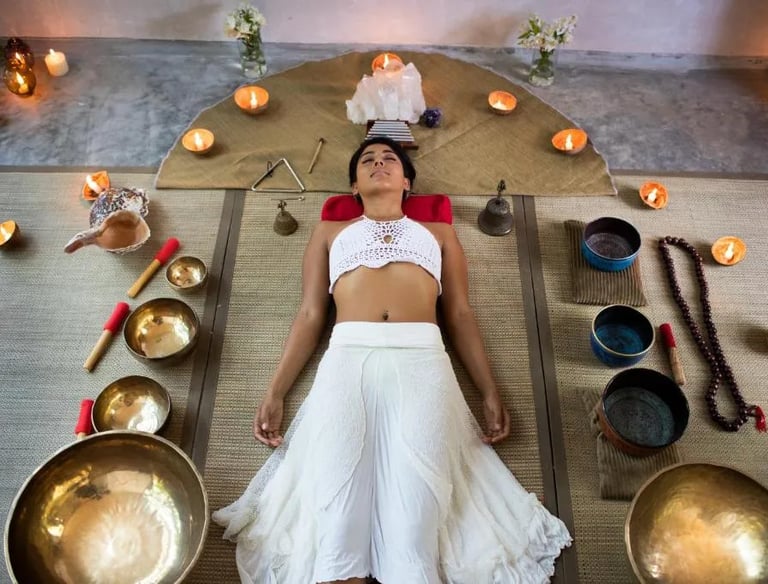 Es una experiencia terapéutica y meditativa en la que te sumerges en vibraciones armoniosas generadas por instrumentos como cuencos tibetanos, gongs y diapasones. Estas frecuencias ayudan a inducir un estado profundo de relajación, reduciendo el estrés.