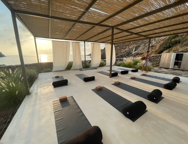 Yoga restaurativo, enfocado en la relajación profunda y la liberación del estrés.